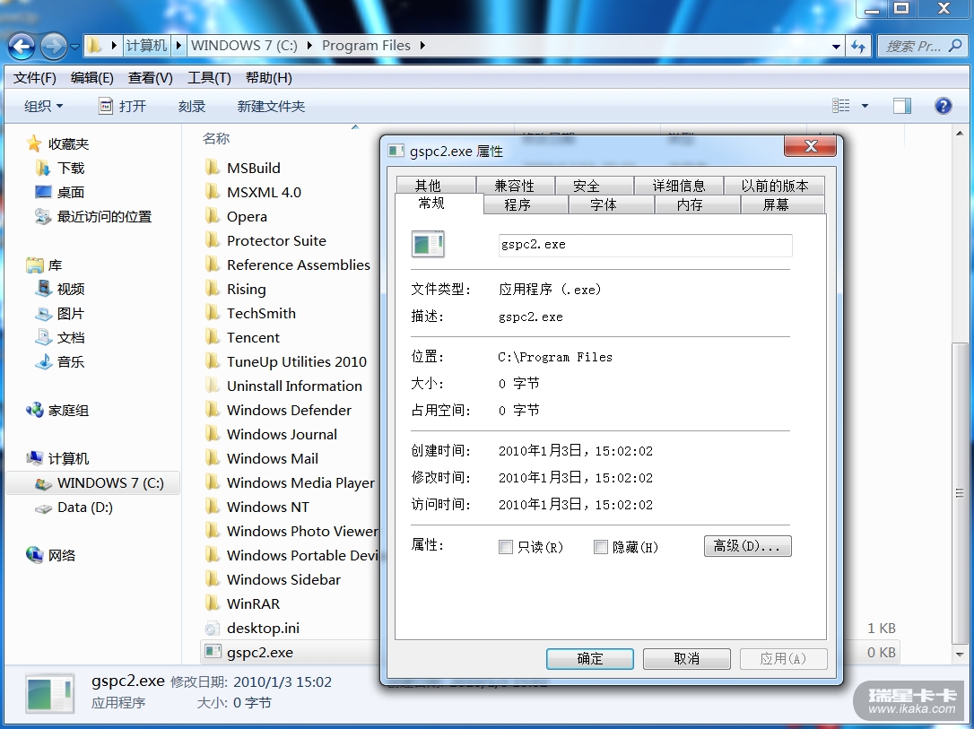 在仅安装了 Rav/RIS 2010 + 卡卡 反病毒系