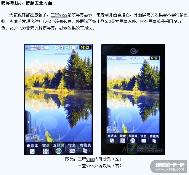 双屏幕触控 3G双网双待臻品机三星W799评测