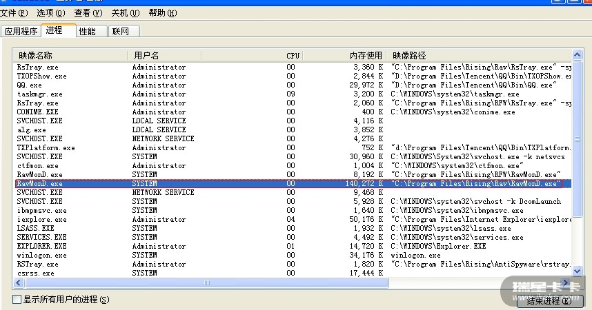最近发现电脑开机一段时间之后,感觉非常慢,一查看到RavMond.exe占用内存很多,不知怎么回事,请帮忙解决,非常感谢!!