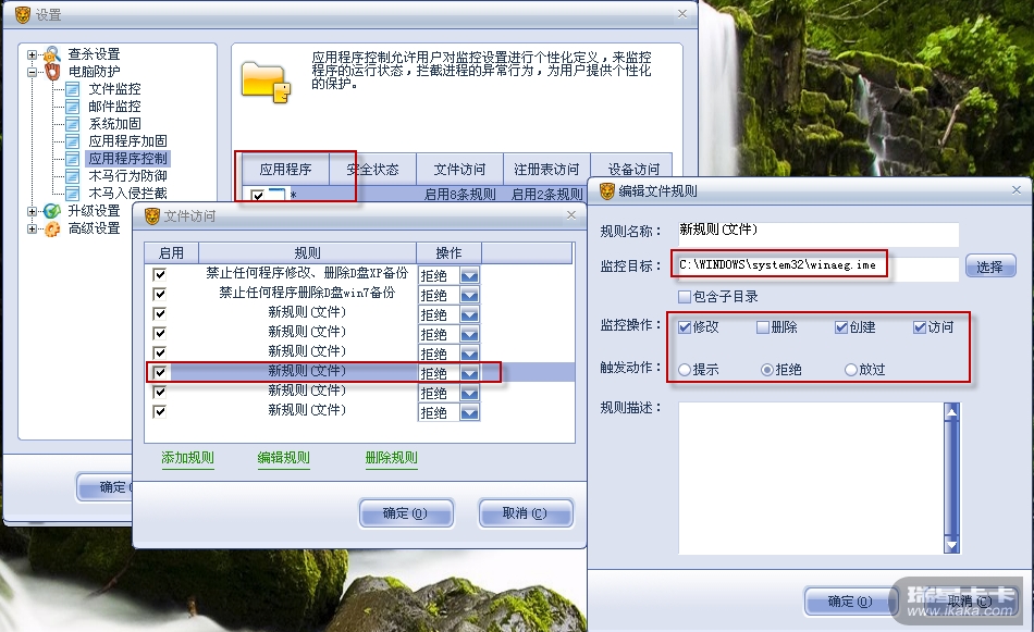 一、在瑞星2010的“应用程序访问控制”中设置规则,禁止任何程序访问下列文件或文件夹: