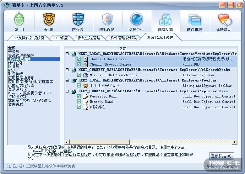 lz说道是某个插件引起,也说道打开某些网站,我特意看了下卡卡,卡卡没有清理ie插件的功能,而且也是处理恶意网站,而不是修复ie吧。