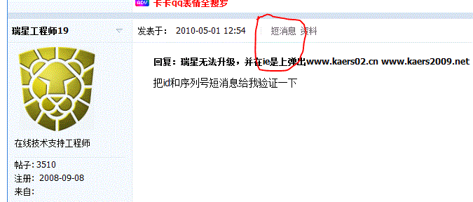 回复:瑞星无法升级,并在ie是上弹出www.kaers02.cn www.kaers2009.net