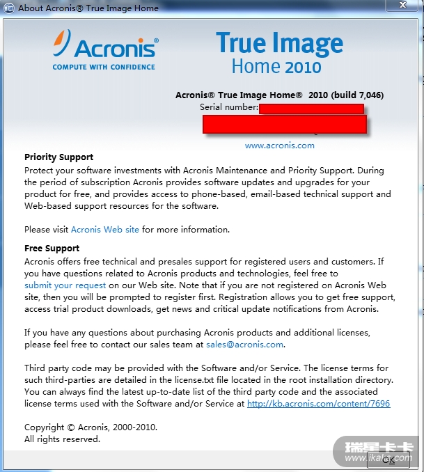 这个版本可在WIN7 下使用。Acronis True Image 2010 home有中文版(用百度或google搜),但中文版貌似不如这个来自官方网站的英文版(试用版)好用。