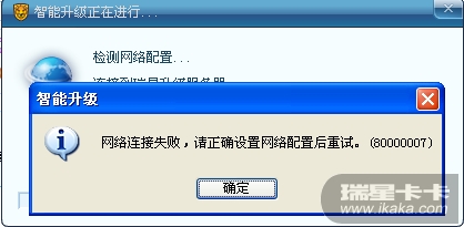 下午开机,自动连接上网后,升级杀毒软件和防火墙,可是无论我怎样点击或是重启再升级,还试过瑞星升级异常的信息收集,但还是不能升级,一点击升级不管是杀毒软件还是防火墙,都弹出一模一样的对话框(如图),实在没办法了,只好上论坛求助,请高手帮我看一下:升级问题该如何解决?