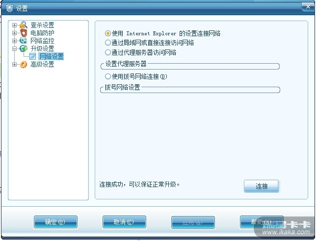 因为家里电压低,电脑不正常关机,造成瑞星升级文件损坏。卸载后重新安装(原先的文件已经全部删除了),但是不能升级了。老是停留在“检测网络配置”窗口。