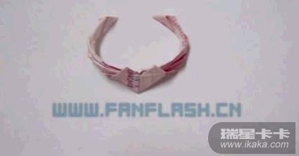第八步:叠好后将叠成条形的RMB弯曲成戒指的模型,然后用东西将两端接上。