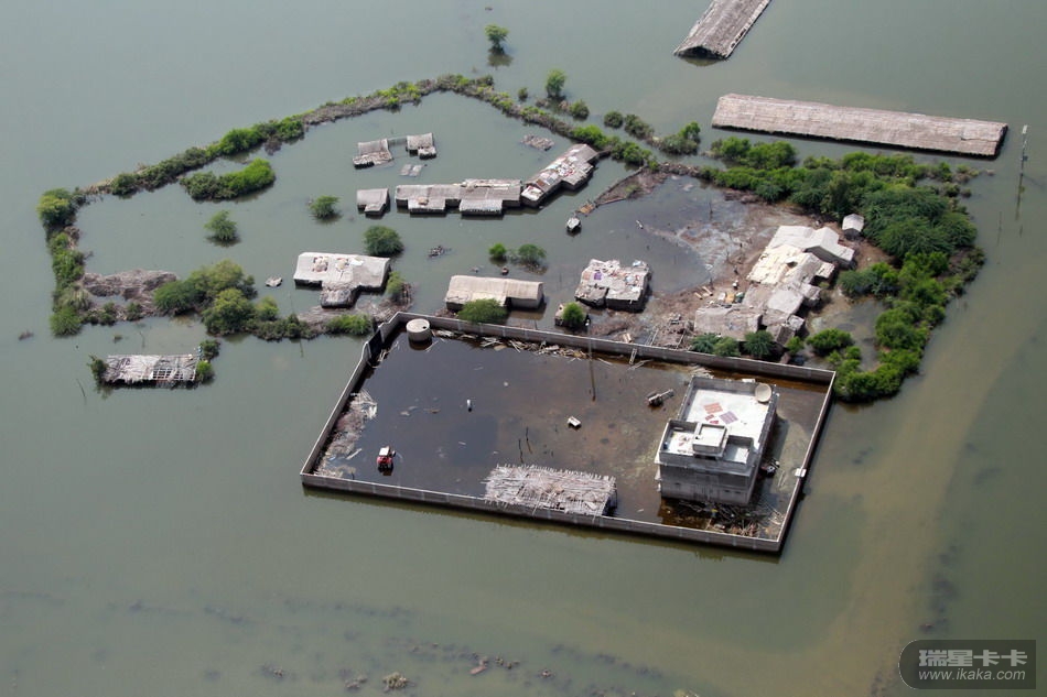 34、在巴基斯坦南部受灾严重的特达地区,洪水依然淹没着大片土地。特达地区位于印度河沿岸,由于河岸溃堤,该地区近50万人被迫转移,成为受灾最严重的地区之一。