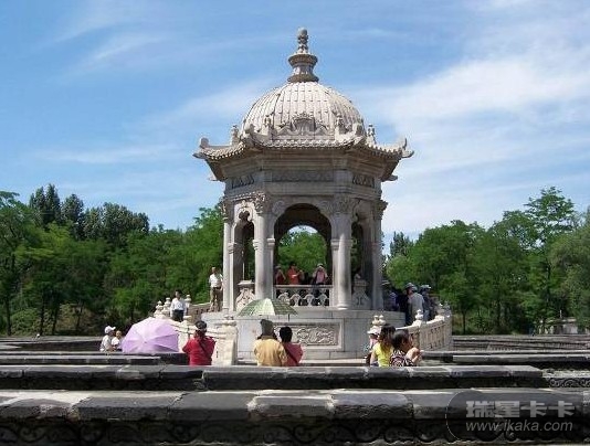 黄花阵是这里的又一景观。它是仿照欧洲的迷宫而建造的花园,外砌长方形迷阵,中心筑高台圆基八方西式亭。方阵南北长