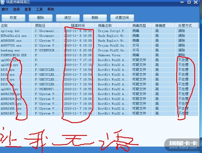 o(︶︿︶)o 唉,我的瑞星2011只能打开界面~界面里的功能点了也不起作用~这是怎么回事啊~还是2010比较好啊~2010版的怎么样能只更新病毒库,不更新版本啊~?