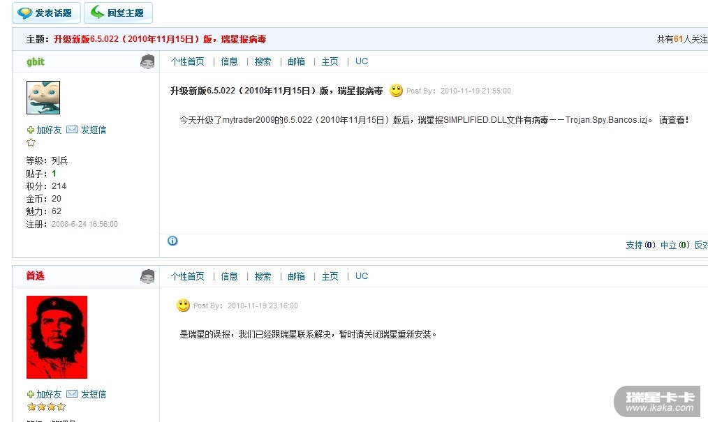 11.22日 20.21分 升级的瑞星杀毒软件 还是继续误报啊