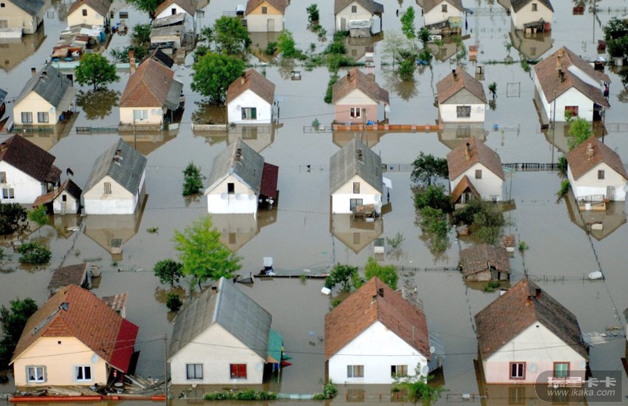 东欧千年一遇洪灾,图为被洪水淹没的居民区。