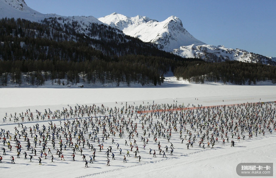3月14日,瑞士马洛亚地区,一年一度的瑞士雪地马拉松越野赛开赛。滑雪大军浩浩荡荡穿过雪原,超过10000名运动员参加了今年的比赛。
