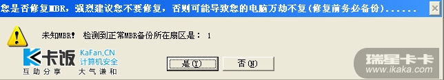 发现异常,MBR被修改了。点“是”修复,再次检测,修复成功。