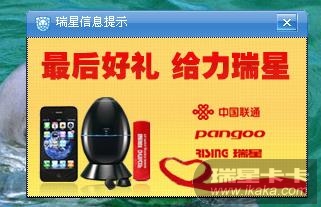 瑞星也用好几年了,杀毒软件就该做该做的事,像宣传可以到网站上去,别强加到用户软件中,这样不厚道,杀毒软件除了有病毒,正常情况下就应该安静点,别总弹出一些信息窗口,让人烦啊