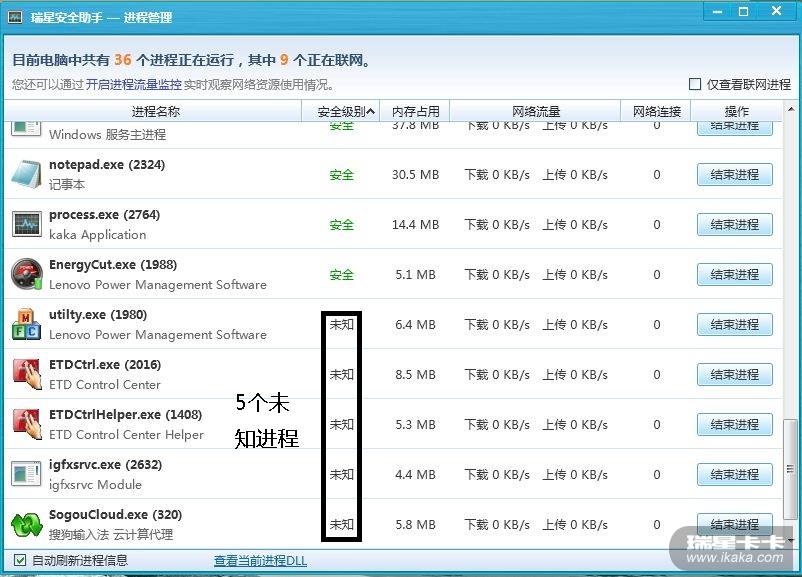 结果:异常- 联网时 所有进程都显示 安全的 ,但一断网 总会有许多进程显示未知