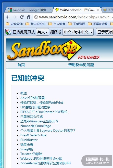 记得sandboxie官网说和瑞星冲突的(那是08年的事情了)想问一下sanboxie3.52和现金的2011全功能版本是否冲突