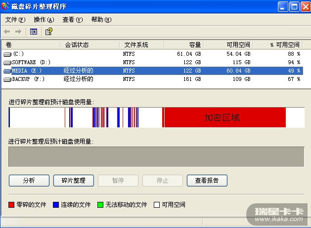 查看报告,是加密区域无法进行碎片整理。