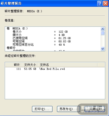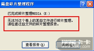 碎片整理完毕,但显示某些文件无法进行碎片整理。