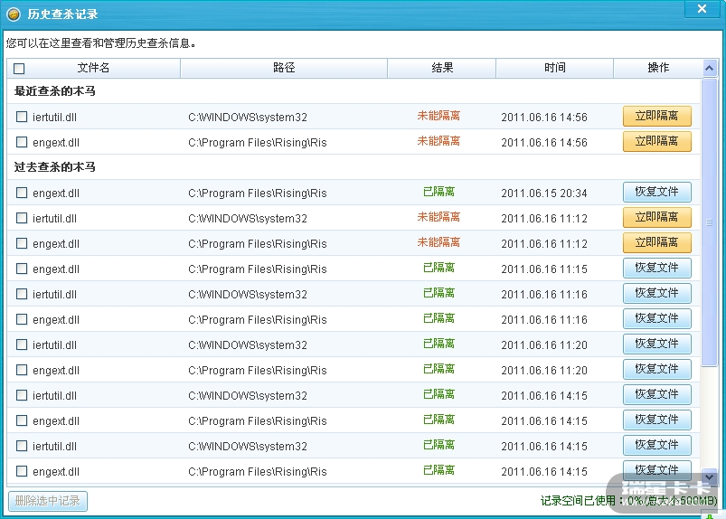 看提示应该没有隔离成功,请您根据路径查看这2个文件是否被删除,如果没有请不要做其他处理,等待瑞星助手后续升级。