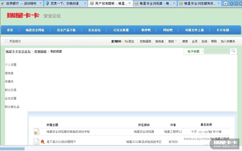 涉及的相关网址:http://bbs.ikaka.com/myposts.aspx