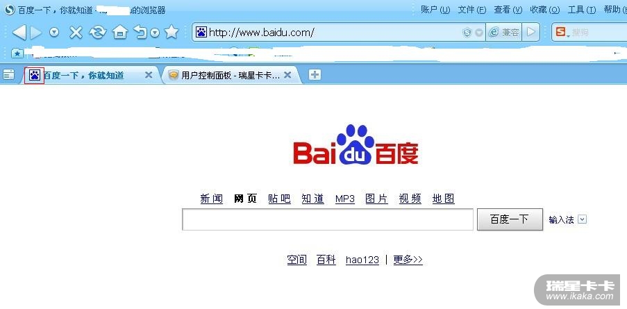 出现问题前的操作步骤:在访问百度之前访问过财付通,直接在财付通页面的地址栏输入了百度的地址,导致百度的图标展示错误,为财付通的图标(见图三中红框)