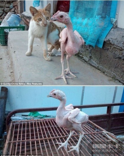 这只可怜的小鸡出生在山东省一处偏远的农场,它患了一种怪病,从蛋壳中孵化时就没有羽毛,一直长这么大也还是一样,浑身没有长出一根鸡毛。很多人担心这样几乎“可以直接烧烤”的状况可能会让它遭遇不幸,不过还好由于它过于奇特,它成了很多游客争相观看的对象,暂时还没有生命危险