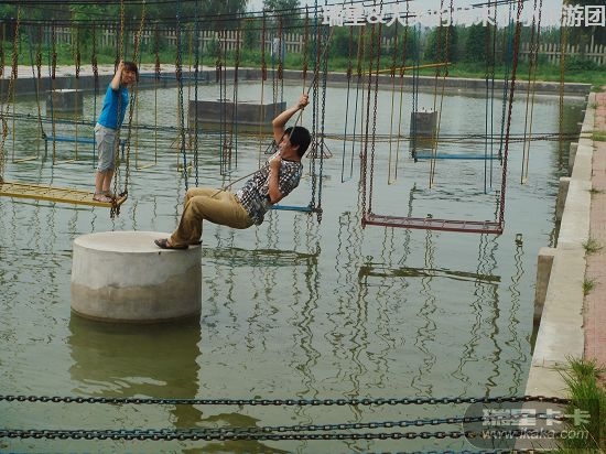 下午一点左右,我们来到了航空梨花庄,我们先在里面吃了顿饭。吃完饭,导游说:“这里有一些特殊训练,有教练教我们,如果大家愿意一起来试试吧!”我们来到梨园里,才知道特殊训练就是夏令营的野外生存的项目啊!有在草地上的项目,也有在水上的项目。大家玩得很高兴,有些人因玩水上的项目而弄得裤子湿掉了。这一下午我们玩得很高兴。