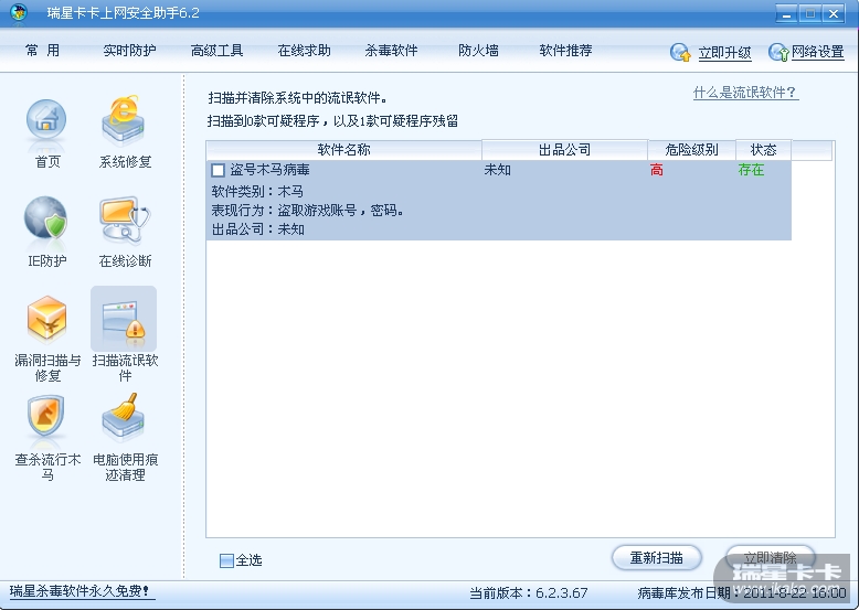 瑞星卡卡上网安全助手已经不再维护了,请使用瑞星安全助手