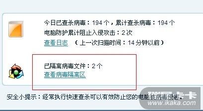 一开始安装的是 金山2012 猎豹的。 后来卸载了装 瑞星 然后还有就是金山卫士和金山急救箱在 被感染的文件好像不能压缩 隔离区也没满、因为我今天才装的瑞星