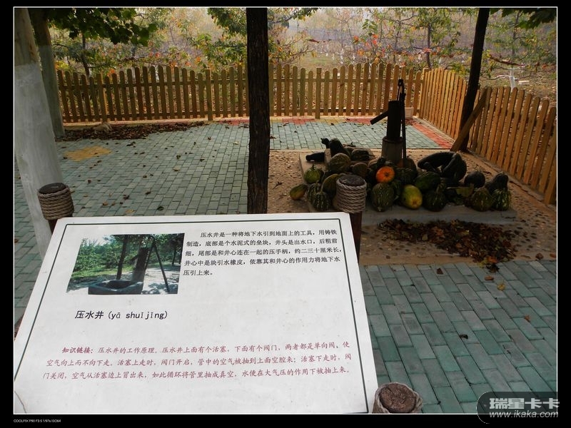 新鲜的还有园中的一切,有在电视里才能看见的石碾,一堆堆的倭瓜,压水井,辘轳井等等,还有我好多都叫不上名字的农具,真是大开眼界啊