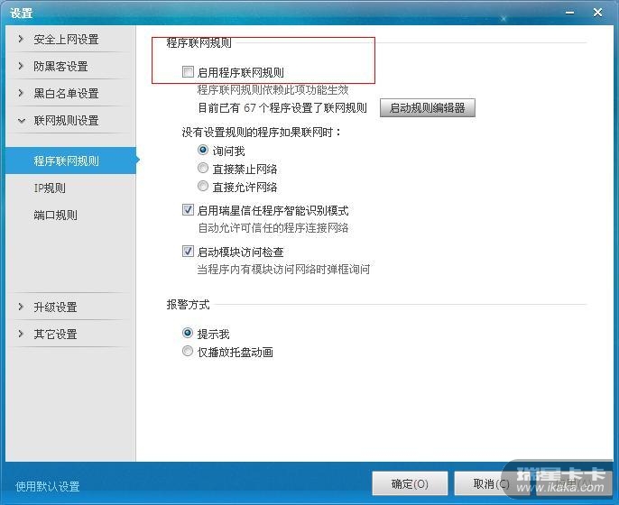 在防火墙设置里,勾选“启用程序联网规则”,点击确定。然后再进入防火墙设置,会发现“启用程序联网规则”前的勾已经被去掉了。