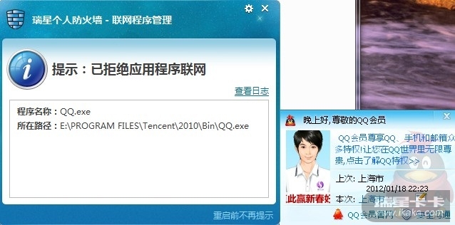 如上图,设定两条矛盾规则,放行在上,禁止在下,但不勾选放行的那一条,只让禁止的生效,下图是效果: