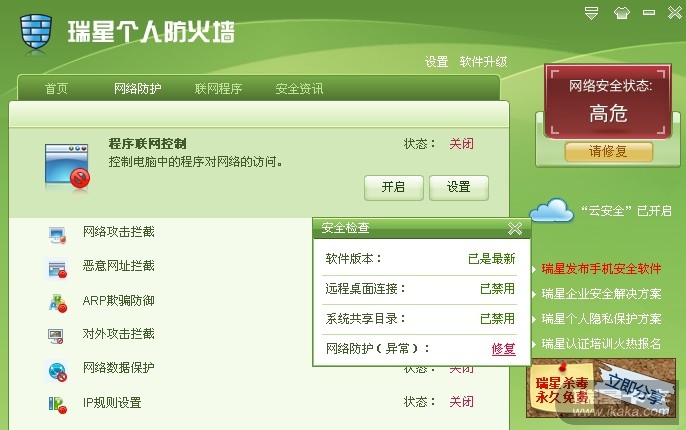 瑞星个人防火墙V16
