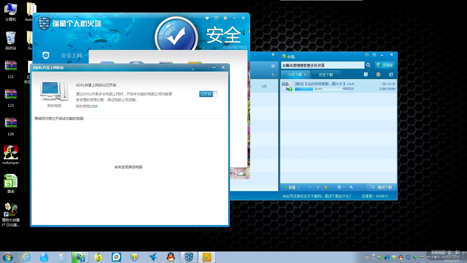 1.使用QQ离线下载功能,开“ADSL共享上网优化”