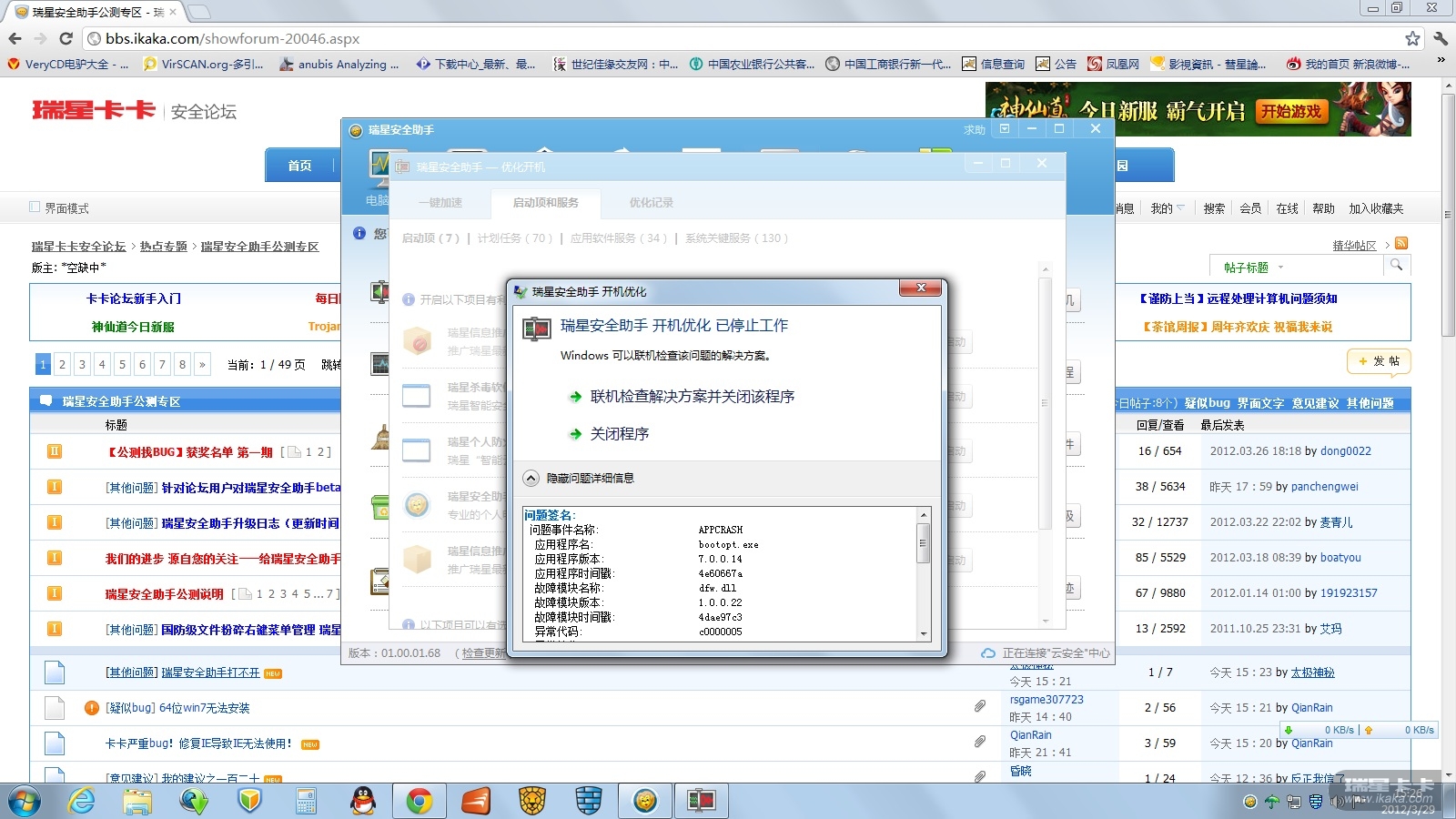[疑似bug] 小岛测84——瑞星安全助手停止工作