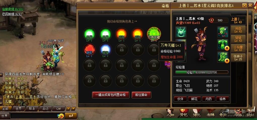 【活动内容】:在活动期间内,获得命格“飞仙”或者“万寿无疆”(任意一种)并在神仙道论坛活动专贴进行回帖提交相应信息的前三