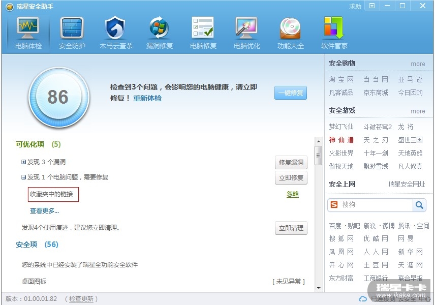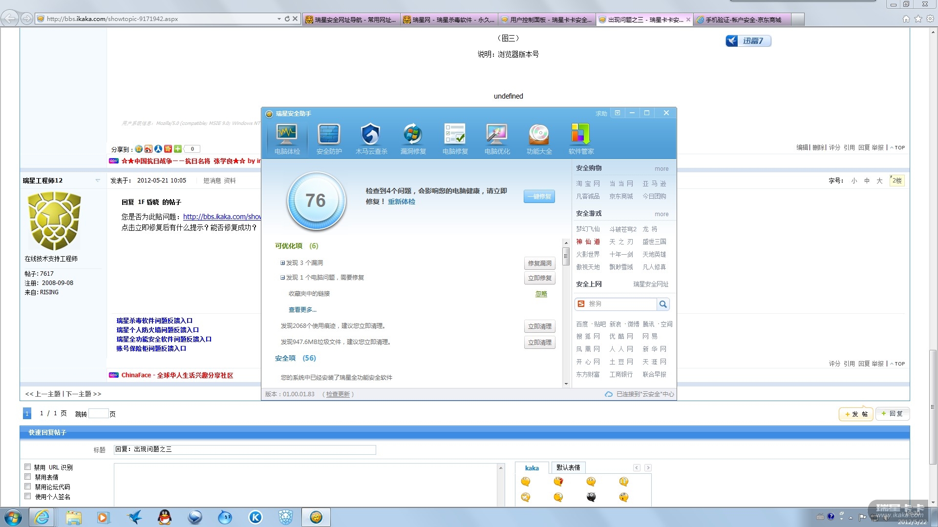 在试用瑞星安全助手的时候,发现了一个问题。(如图所示)