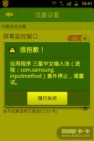 还有流量监控里面无设置流量限额时,不能输入,过一会显示应用程序:com。anmsung。inputmethod 意外停止,请重试
