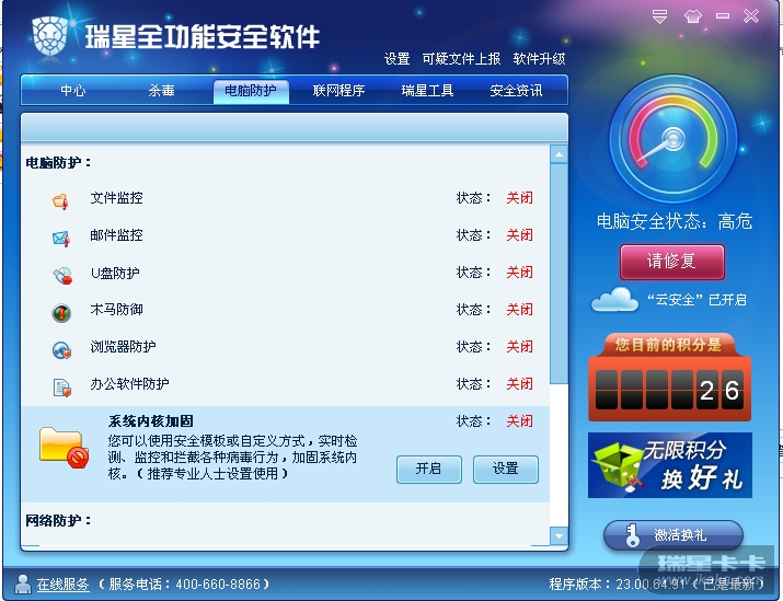[求助] [求助]瑞星全功能安全软件 无法升级 无法开启防护 无法修复 重装失败