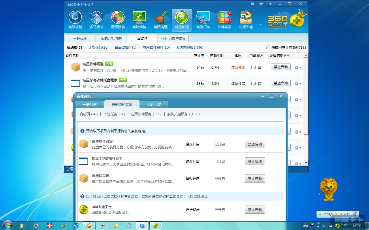 瑞星优化开机设计得蛮好看的,就是内容少了点
