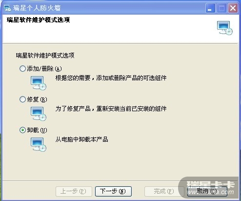 1、不保留用户配置文件卸载瑞星所有软件。即: