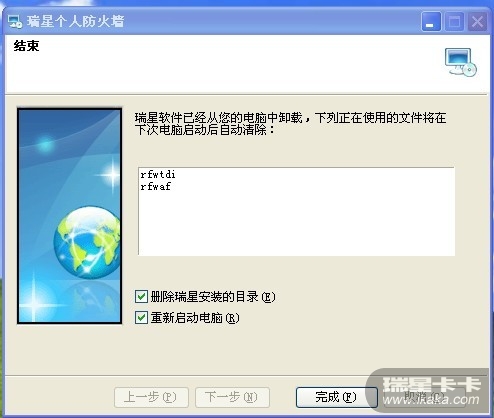 开始>>程序>>瑞星个人防火墙(瑞星其他软件)>>修复>>选择卸载>>下一步,将保留用户配置文件的勾选去掉>>下一步>>最后勾选删除安装目录,重启电脑,控制面板添加删除程序中卸载瑞星软件部署系统,并将rising文件夹都删除。