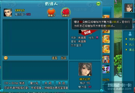 、与有缘人聊天互动,送花、献爱心可获得双倍魅力、亲密度奖励