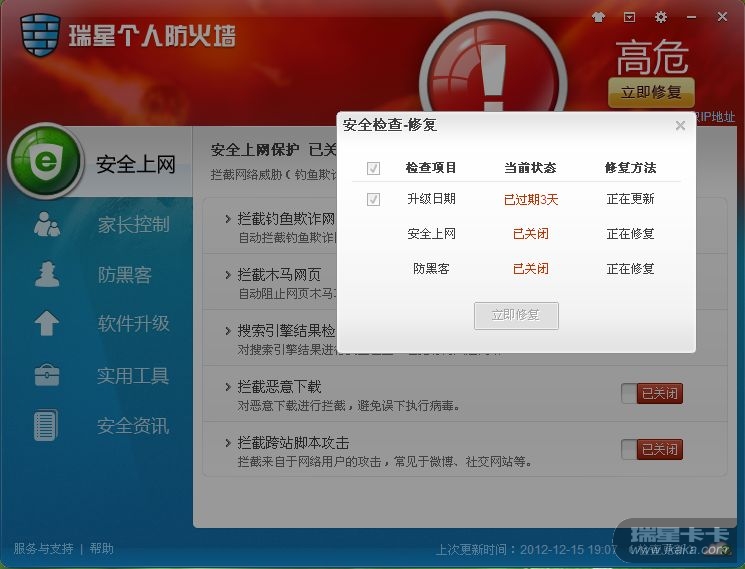瑞星“升级日期——修复方法”变为正在更新——仍为出现升级程序(