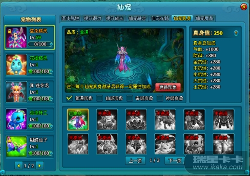 3. 仙宠真身卡需要两种材料合成:XXX真身=XX仙宠之魂+N灵幻石
