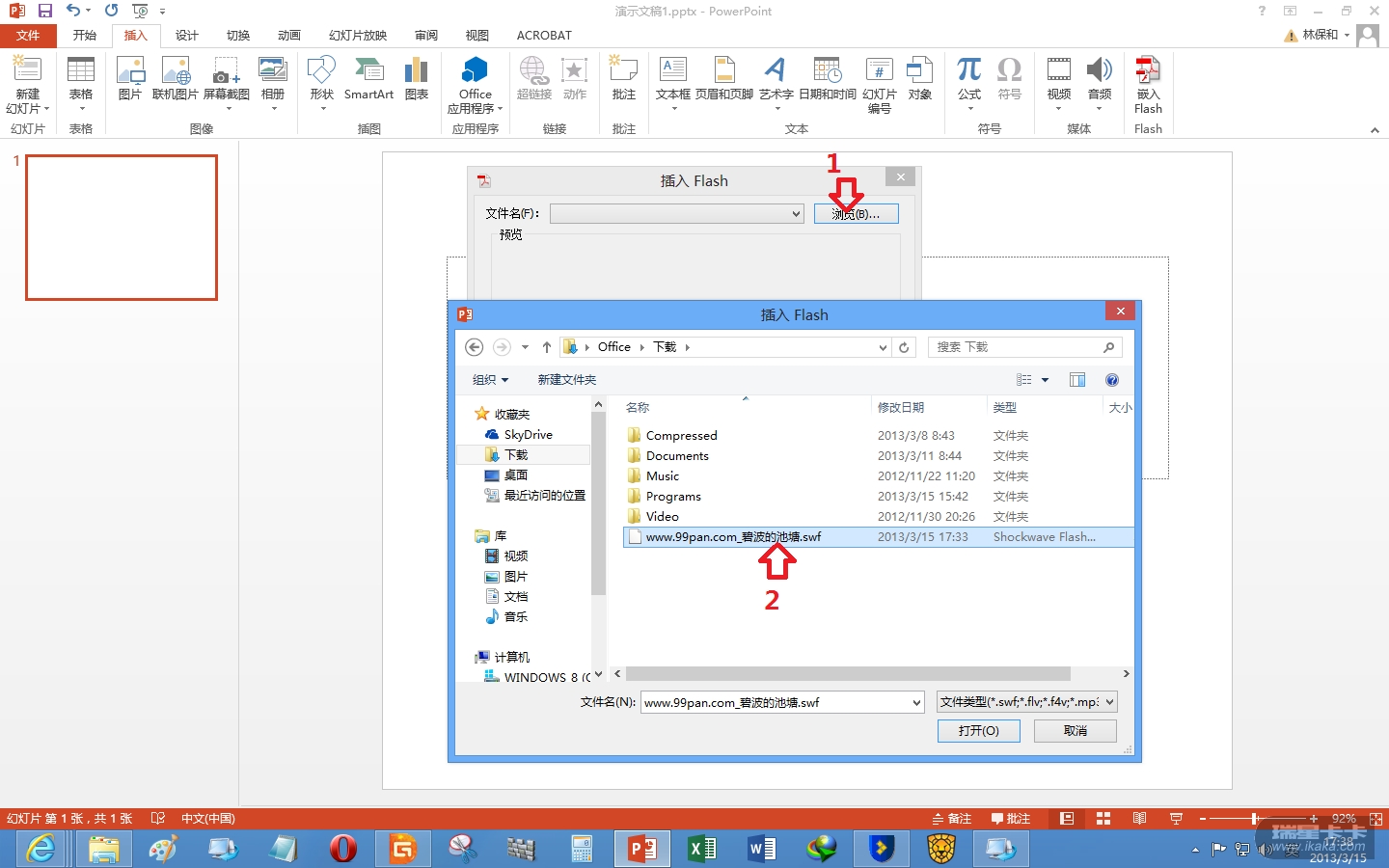 求救高手,如何在ppt中加入swf文件啊?我在PPT里面找不到可以插入SWF文件的地方
