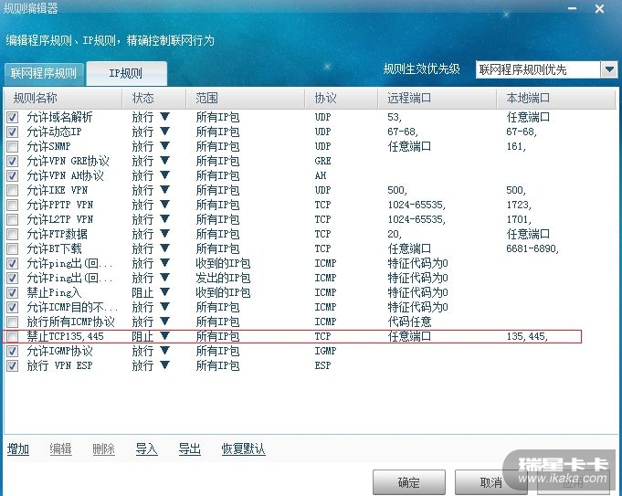 瑞星防火墙如何设置关闭135,445端口