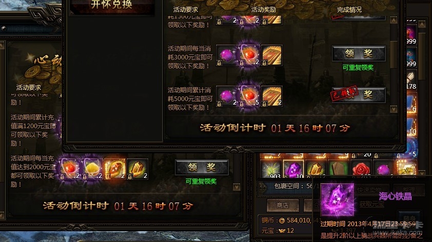 回复: 充值累计领取+返利领取问题,有图为证