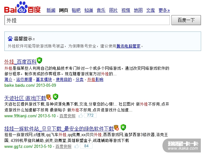 用猎豹浏览器搜索外挂,金山和瑞星的搜索保护显示的结果不一样,有的金山显示绿色图标,瑞星显示红色