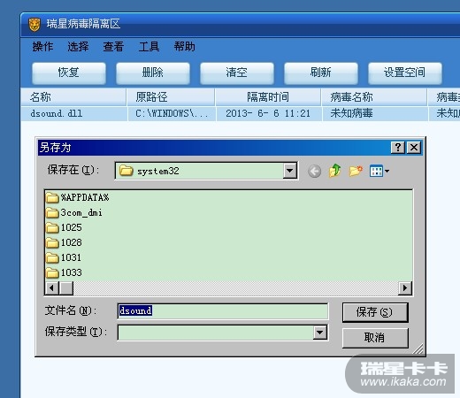 瑞星一直将我电脑系统文件dsound.dll视为病毒杀掉